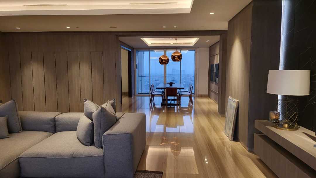 This stunning apartment features three and four spacious double bedrooms, each with ensuite, a formal dining room as well as a large reception room and an eat in kitchen, both with balconies overlooking the Sudirman Street commanding some of the most stunning views in Jakarta.