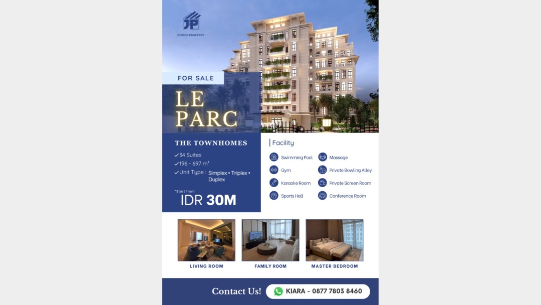 Dijual Brand New Apartement Le Parc 4 BR Semi Furnished Baru